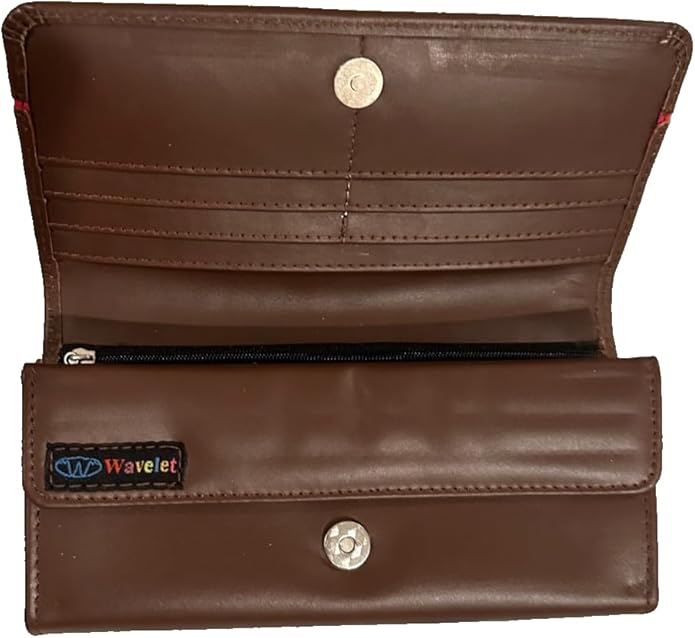 - Features: Made from genuine leather Wavelet brand (logo visible inside) Secure snap-button closure Multiple accordion-style compartments for cash, receipts, or phone Zippered coin pocket inside Several card slots Rich brown exterior with red accent detail Soft, durable interior lining Condition: Brand New with tags. Perfect for: Everyday use Travel Minimalist purse alternative Gift idea What you see is exactly what you’ll receive. Ships quickly and securely.
