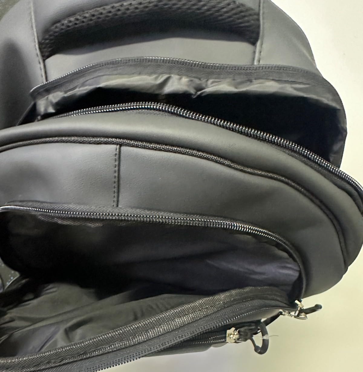 - Material: 100% PU Leather Volume: 24 Litres Dimensions:. 18″ H x 12″ W x 7″ D Weight: 0.8 lbs approx. Zippered main compartment with padded sleeve which can fit an iPad Pro 11 inch and most of 11 inch tablets or 17″ laptops in a padded sleeve. Adjustable slide buckle shoulder padded straps Padded shoulder straps Pocket for a re-usable water bottle Washable Surface Brand: Wavelet by Truckload LLC